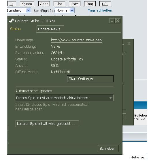Solange unter den Eigenschaften zu einem Spiel steht, dass es nicht zu 100% aktuell ist, und solange da steht, dass ein Update notwendig ist, und solange da steht, dass der Offline Modus nicht verfuegbar ist, solange kannst Du beruhigt davon ausgehen, dass: 1. Das Spiel nicht zu 100% auf Deiner Platte aktuell ist und 2. ein Update notwendig ist und 3. der Offlinemodus nicht vefuegbar ist, bis das Spiel vollstaendig aktualisiert wurde. Wenn Dein Steamclient ein Spiel nicht aktualisiert, wenn Du versuchst es zu starten, dann liegt Deinproblem woanders und Du solltest erstmal in diese Richtung suchen. Zum Beispiel ist es notwendig, dass Dein Rechner eine online Verbindung zum Internet hat, damit ein Update erfolgen kann. |